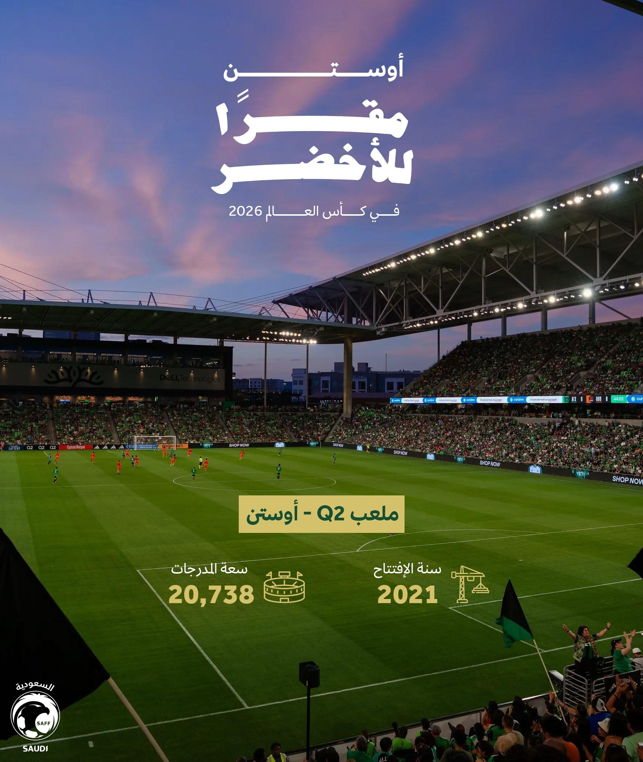 沙特队的训练营将设在奥斯汀Q2体育场,这是美国职业足球大联盟奥斯汀FC的主场。球队将使用俱乐部的球场、设施及会议空间。